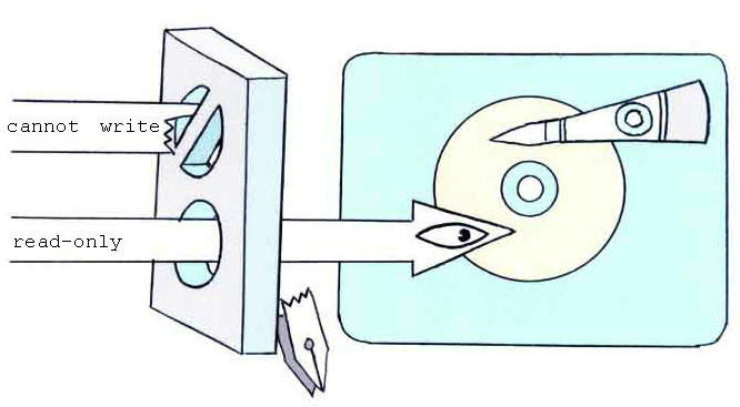 One of the heads is for read and write, and the other is for read-only. Each heads can work independently, so perfect security becomes a reality. Nobody can write, change and delete the data on the disk by read-only head of course.
