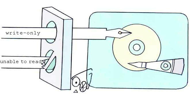 If a hard disk drive has a write-only head, the disk is write enabled but read unabled. You can write file and record access log file on the disk via Internet. However you cannot change, delete, and even read the data on the disk(special firmware needed).